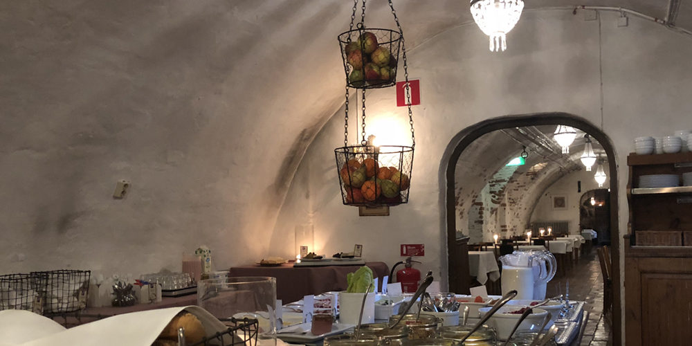 Slottet från 1648 är idag restaurang, festvåning och frukostmatsal.