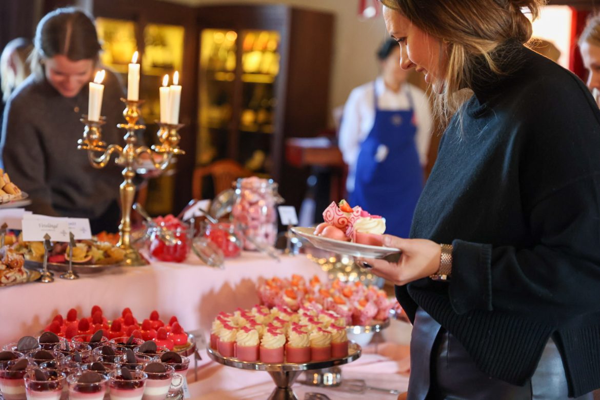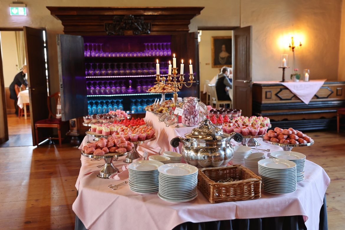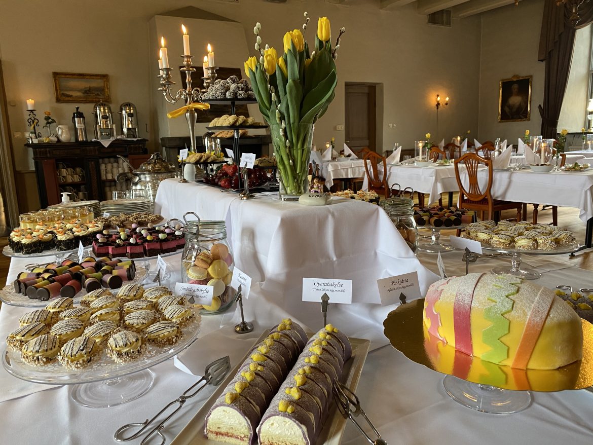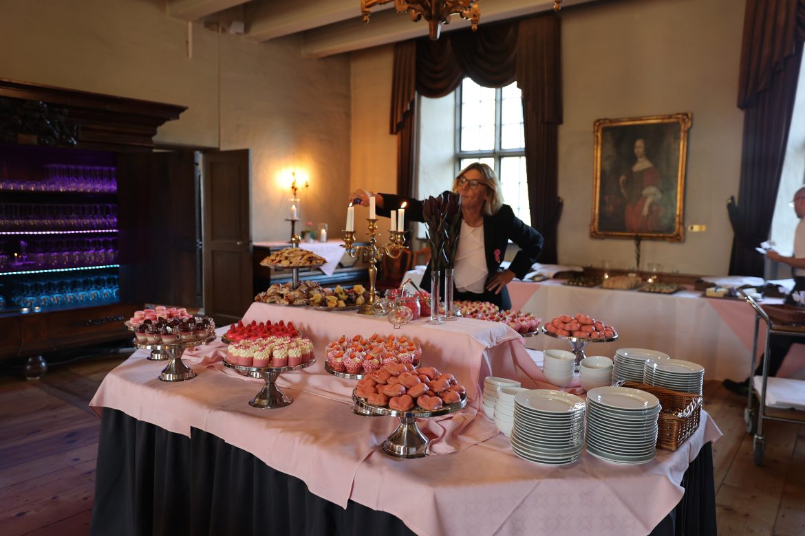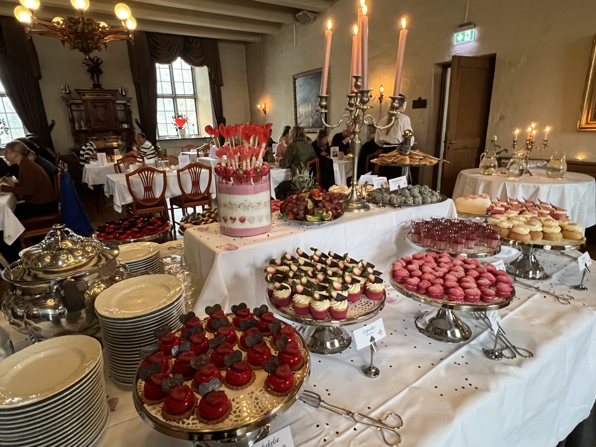 Slottets konditor Malin / snittar, scones, ostar & marmelader / ljuständning av restaurangchef Maria.