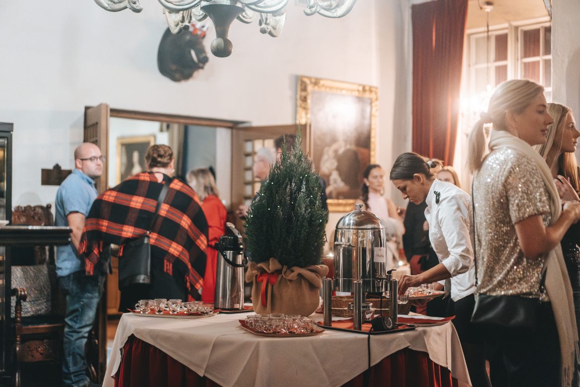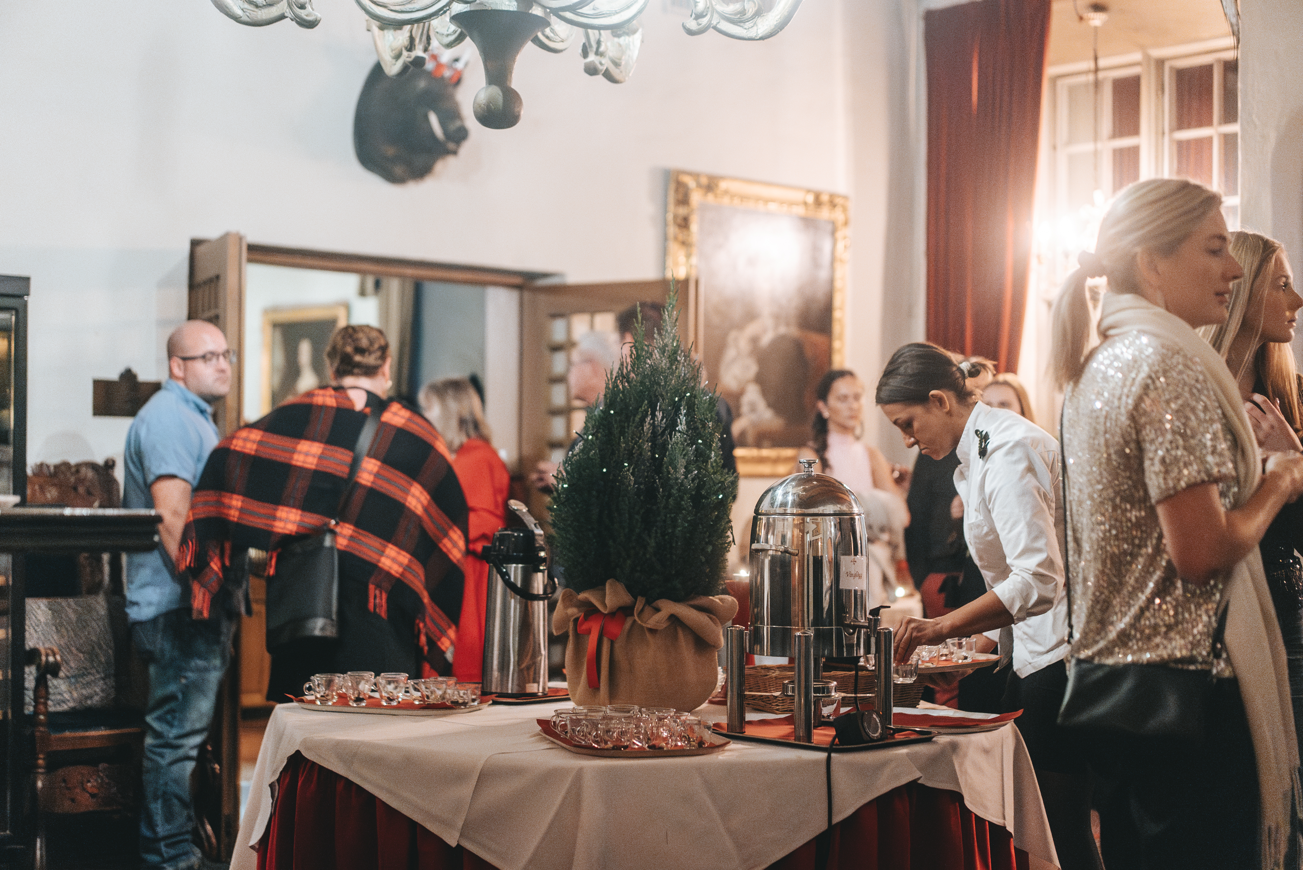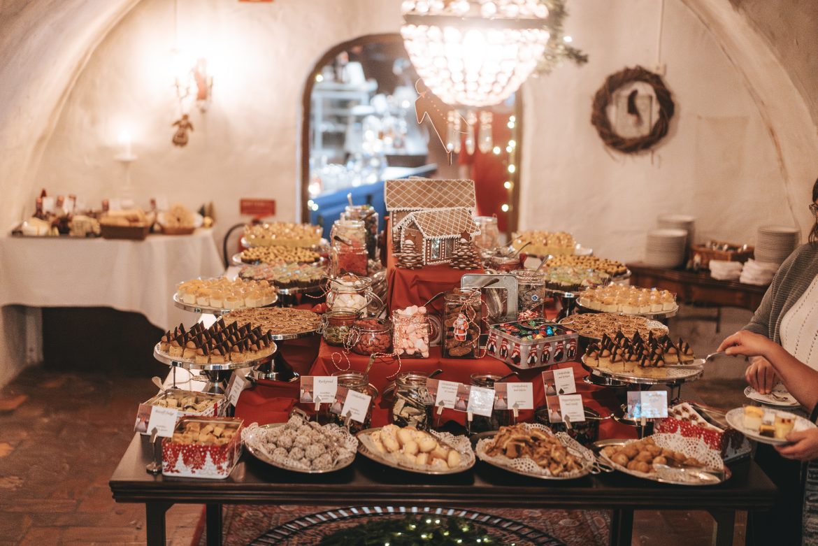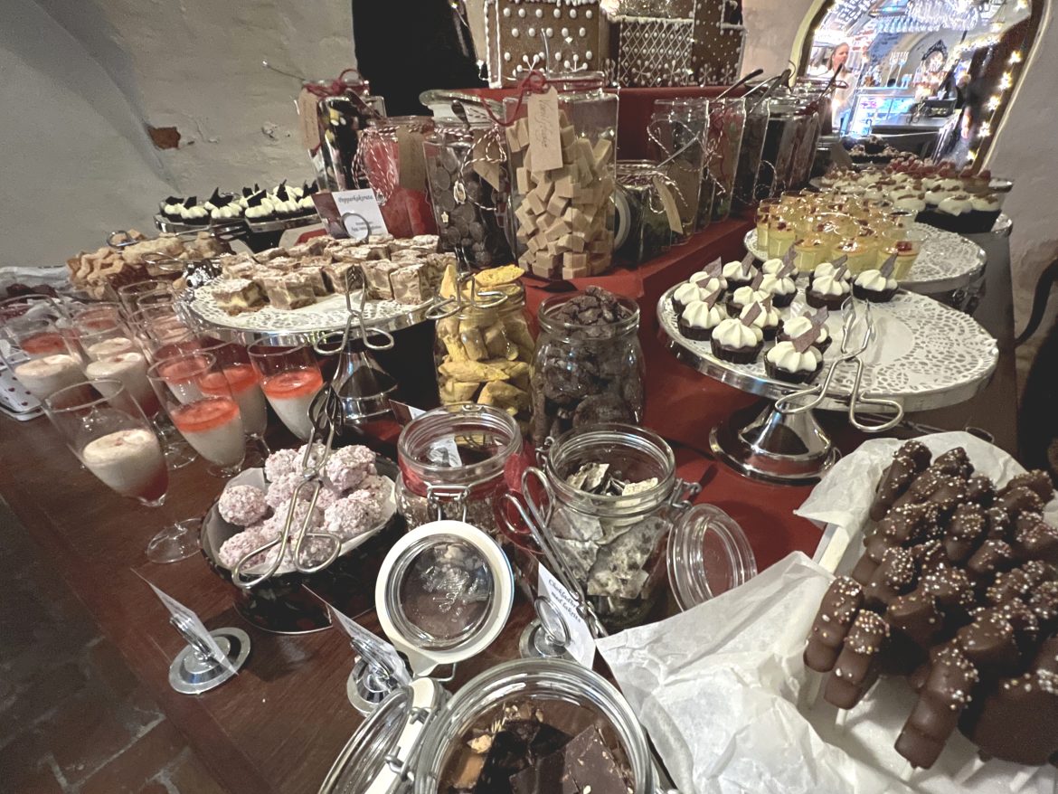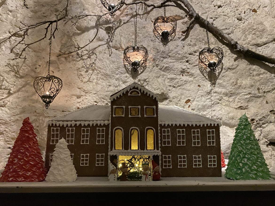 Mulled wine mingle / annual gingerbread house / bonfires in front of the castle.