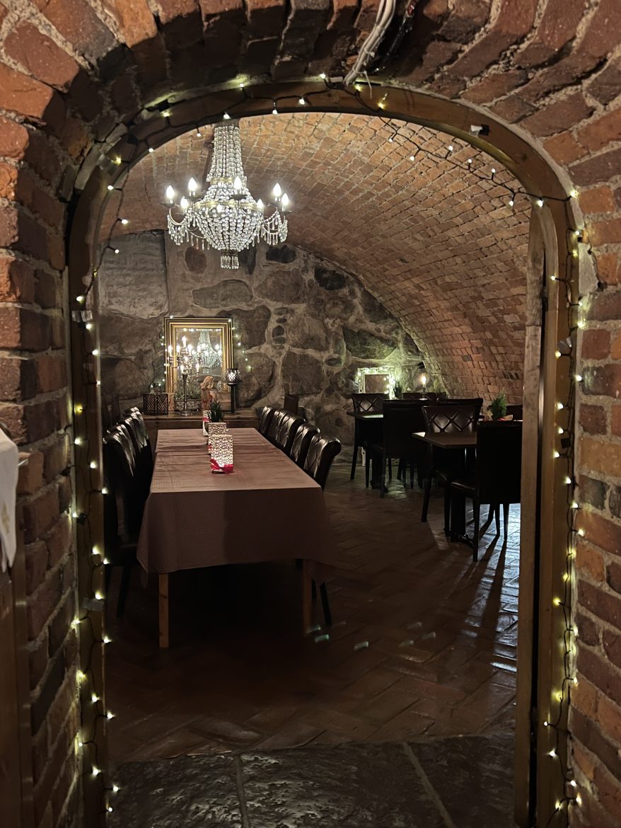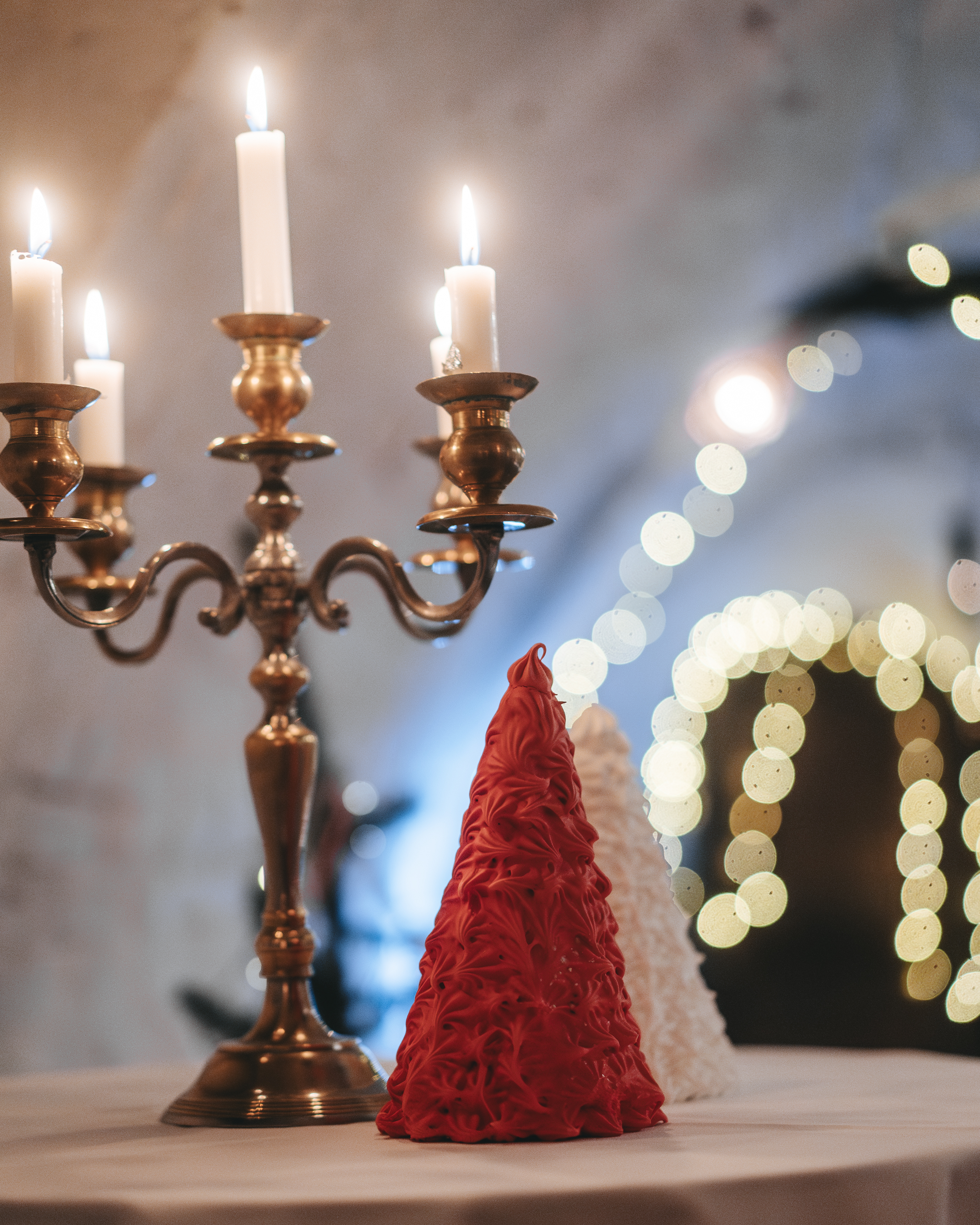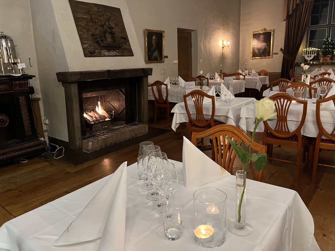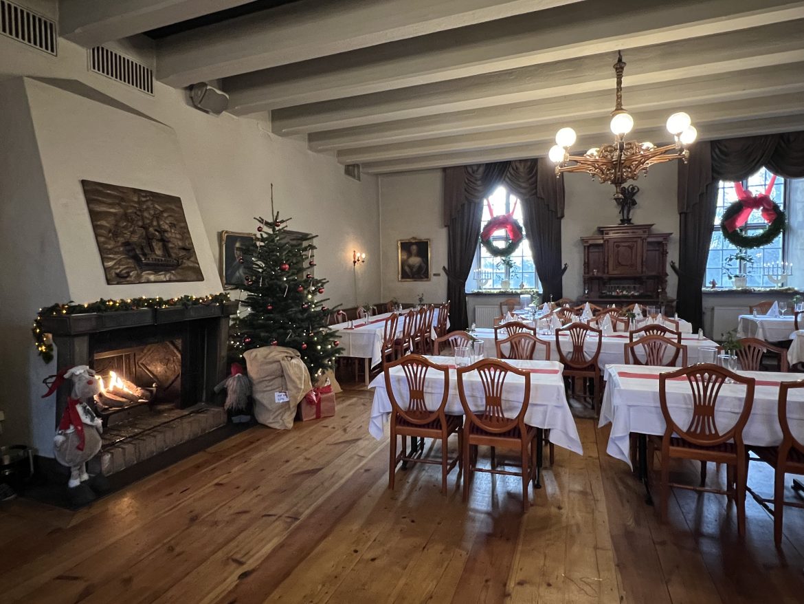 Mulled wine mingle / annual gingerbread house / bonfires in front of the castle.