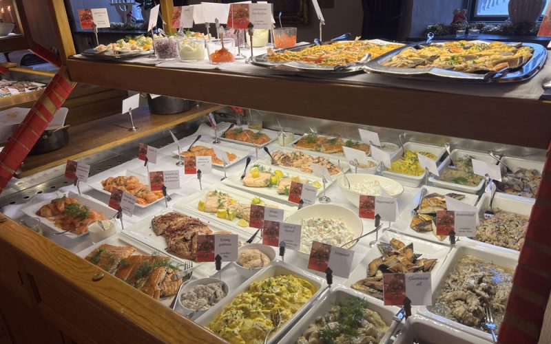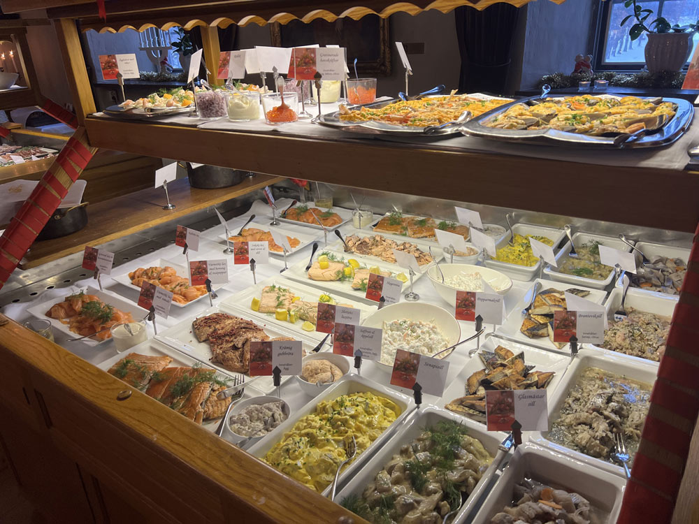 – Slottets traditionella julbord i slottets matsalar.