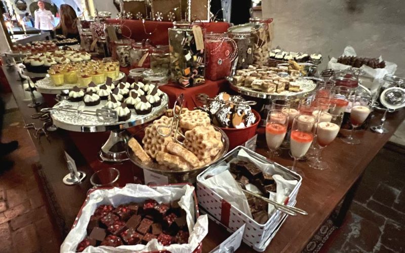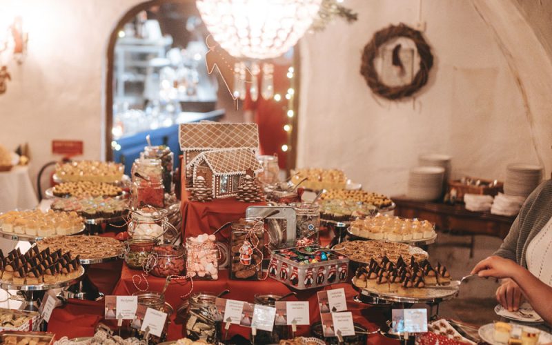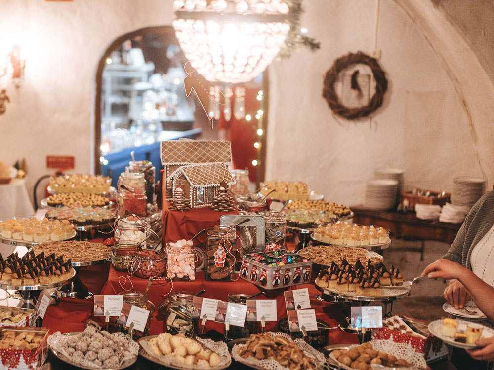 – Slottets stora gottebord i slottsvalven med gotter, desserter och kaffe.