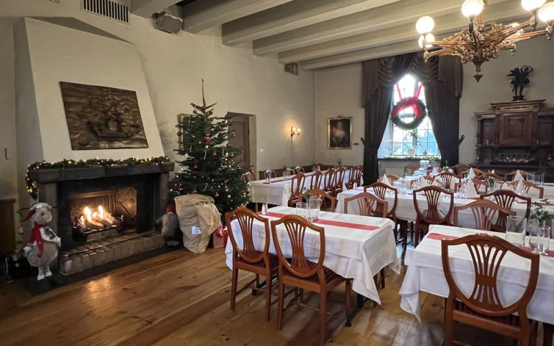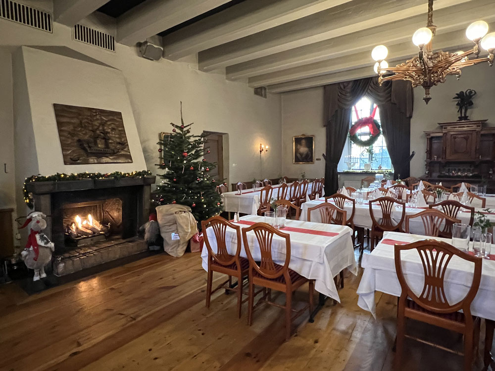 Hos oss kan ni ta det lugnt under julborden. Vi erbjuder endast en kvällssittning vardagar och två kvällssittningar fredagar och lördagar. Den tidiga kvällssittningen (start kl 16.30 alt 17.00) kan sitta kvar i slottsvalvens sällskapslokaler när nästa sittning börjar (kl 19.30 alt 20.00) ända fram till cirka kl 20.45. Mindre sällskap kan oftast sitta kvar längre än så om de önskar.