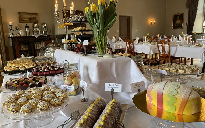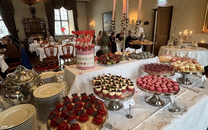 – Slottets afternoon tea med kanapéer och snittar, scones med smör och marmelad, ostar, lemon curd, mängder av olika bakverk, kakor, tårta och färsk frukt. Till detta erbjuds ett urval av teer och kaffe.